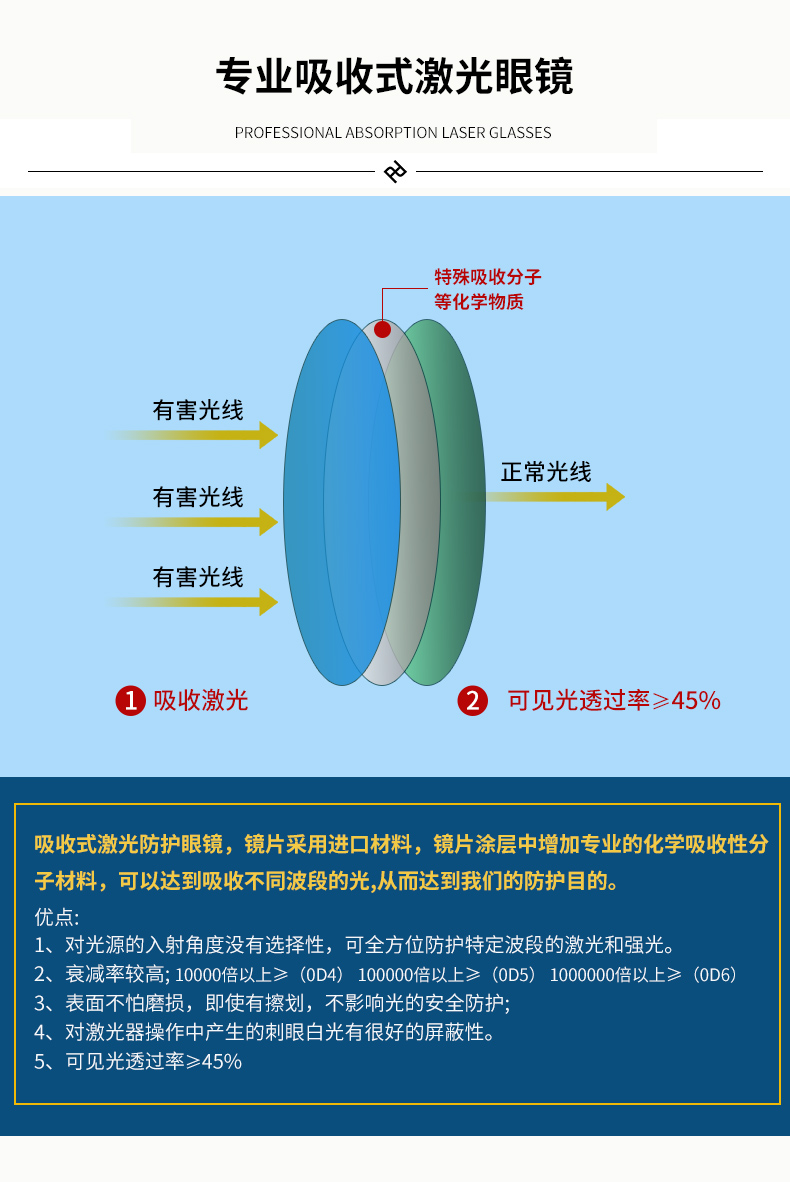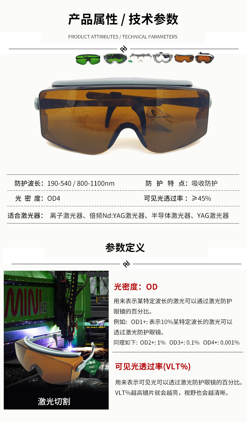 希德sd-4激光防護眼鏡防514\532\1064nm波長(cháng飄雪飄雪)離子激光器鐳射護目鏡
