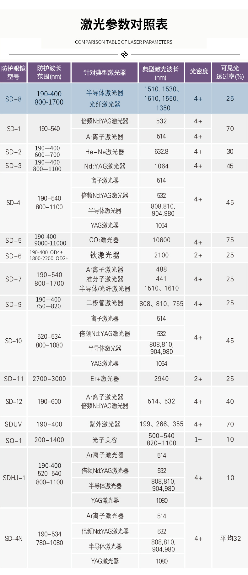 上一篇:希德SD-8激光防護眼鏡防半導體防光釺激光器750-1700nm安全護目鏡