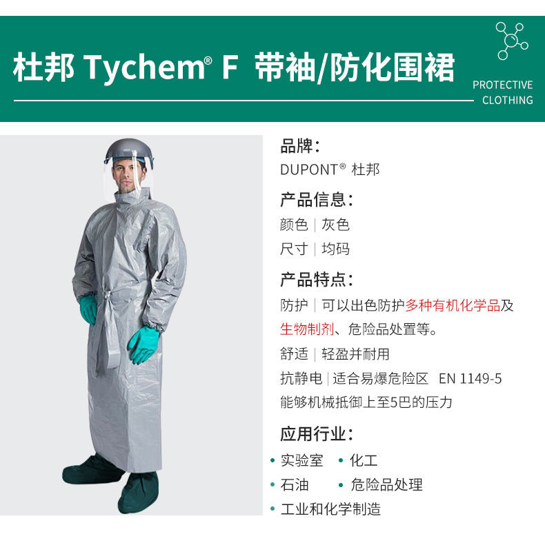 杜邦F級反穿圍裙 防化耐酸堿防化學(xué)品化工實驗輕便防化帶袖反穿衣視頻大地