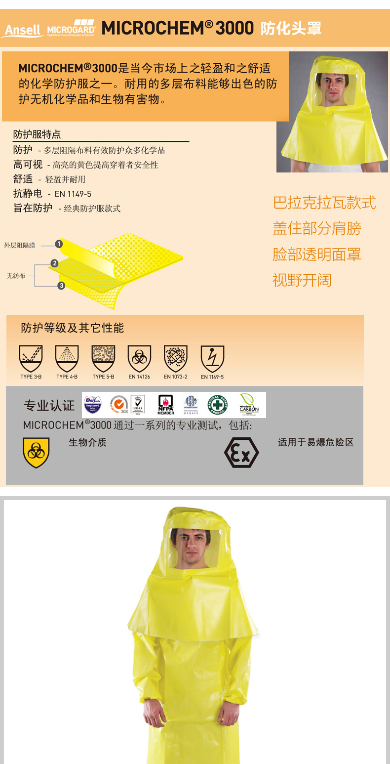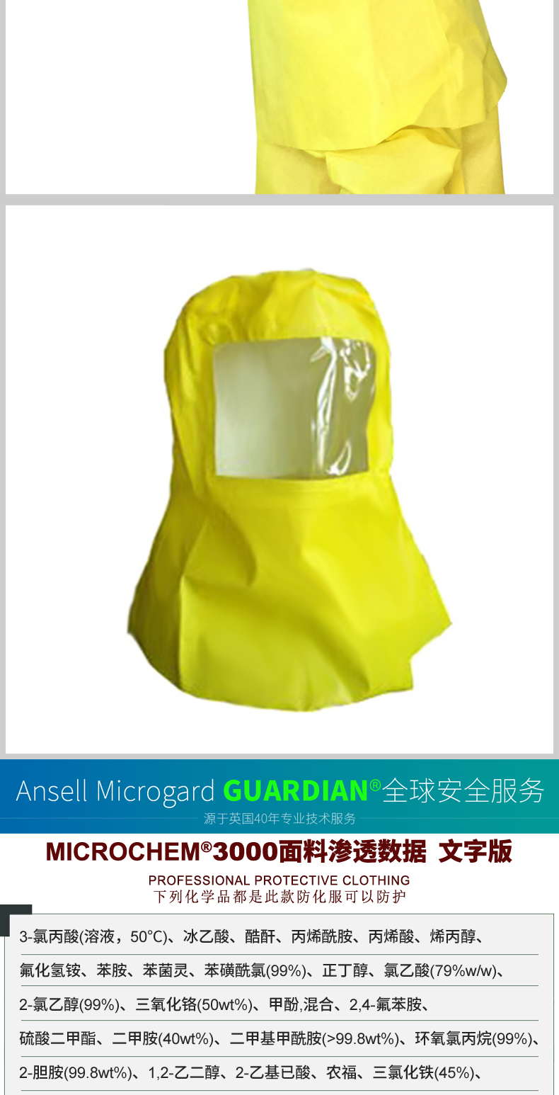 微護佳3000防化頭套 帶面(miàn)屏防化學(xué)品飛濺實驗室耐酸堿TV好姑娘508防護頭罩