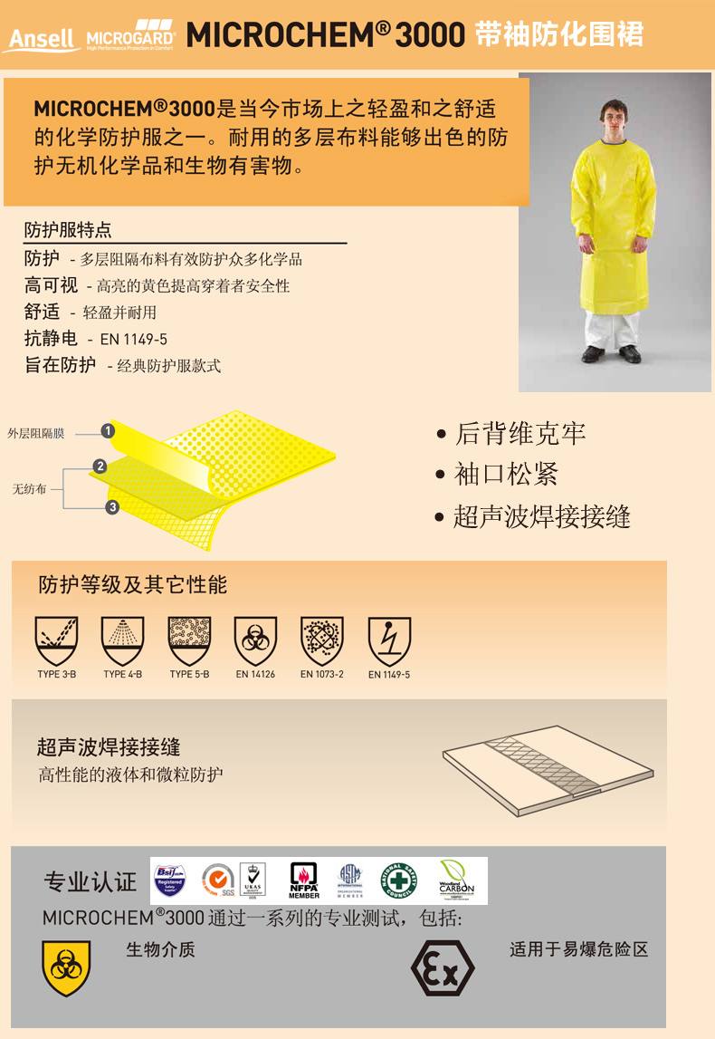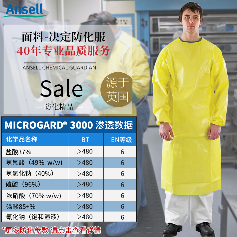 微護佳3000耐酸堿防化圍裙 實驗室防酸堿防硫酸飛濺214帶袖反穿衣