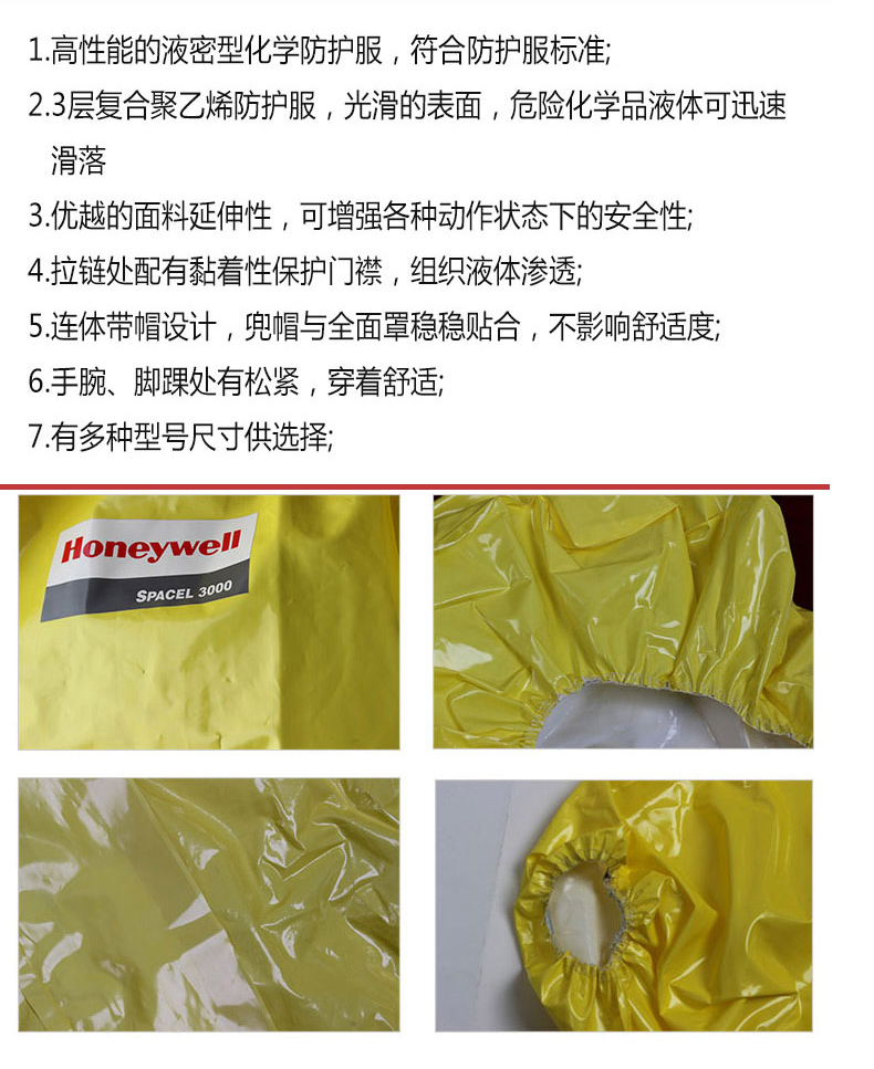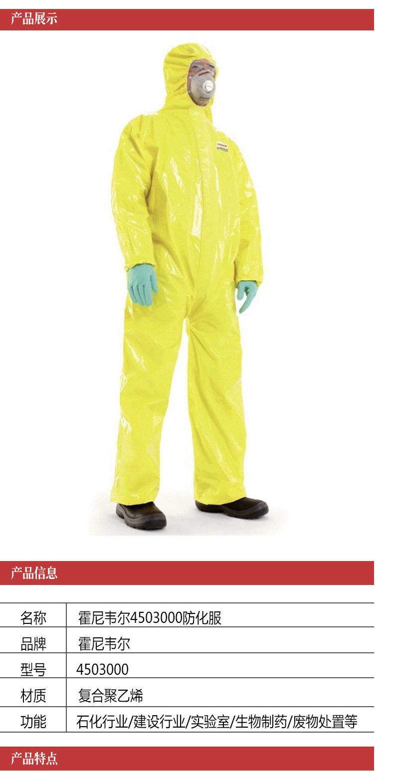 霍尼韋爾4503000防化服連體帶帽防護服農藥化學(xué)實驗耐酸堿工作服