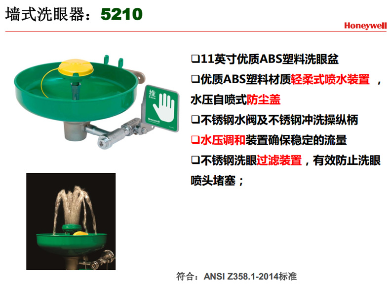 霍尼韋爾5210洗眼器不鏽鋼牆挂台式壁式緊急沖淋洗眼器