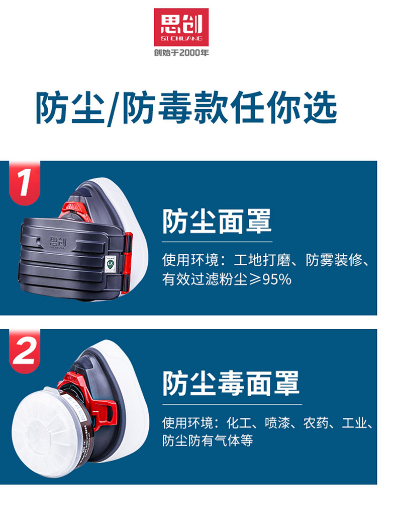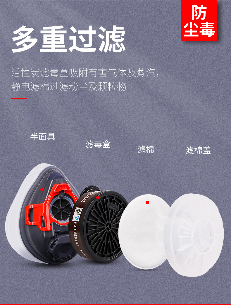 思創矽膠防塵毒面(miàn)具套裝防粉塵顆粒物噴漆面(miàn)罩有機氣體防護半面(m國語TViàn)罩