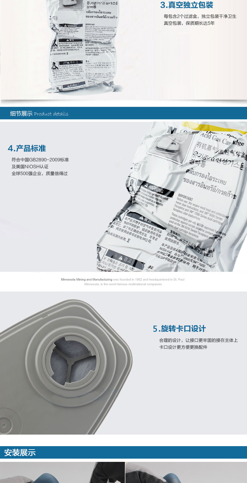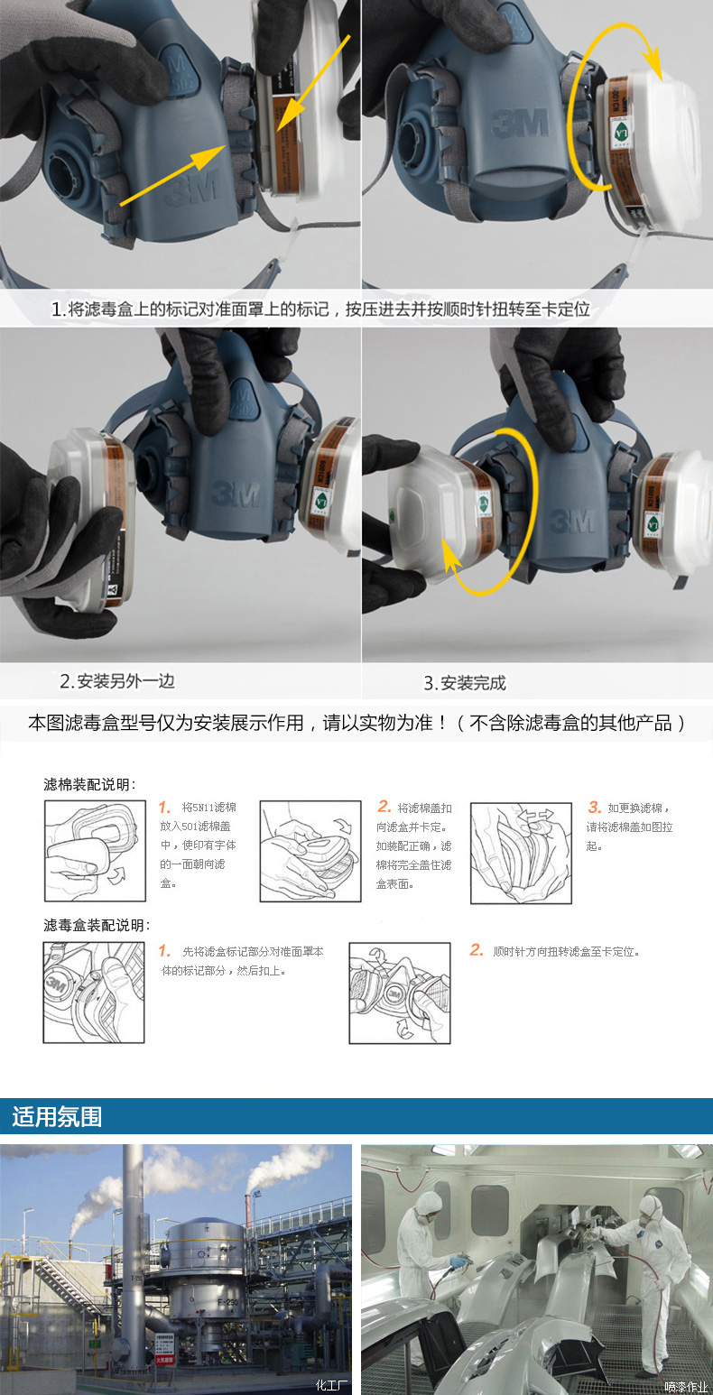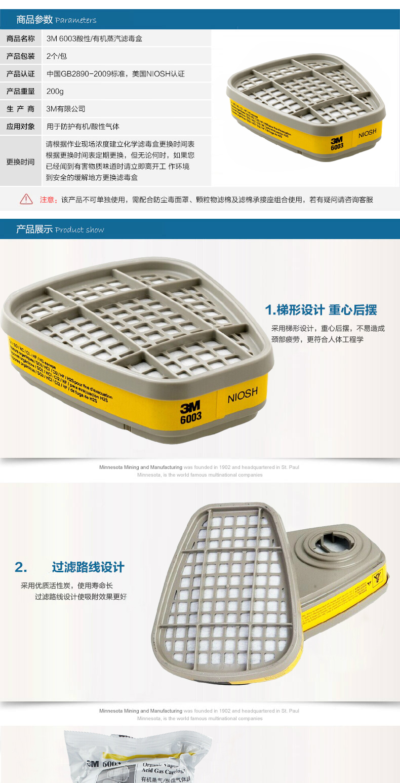 3M6003CN濾毒盒 防氯氣二氧化硫氟化氫活性炭濾芯 防有機酸性濾盒