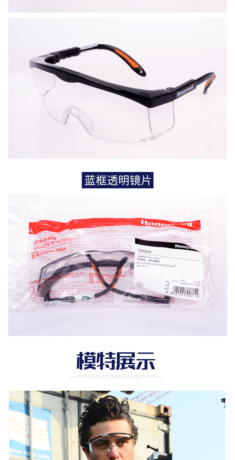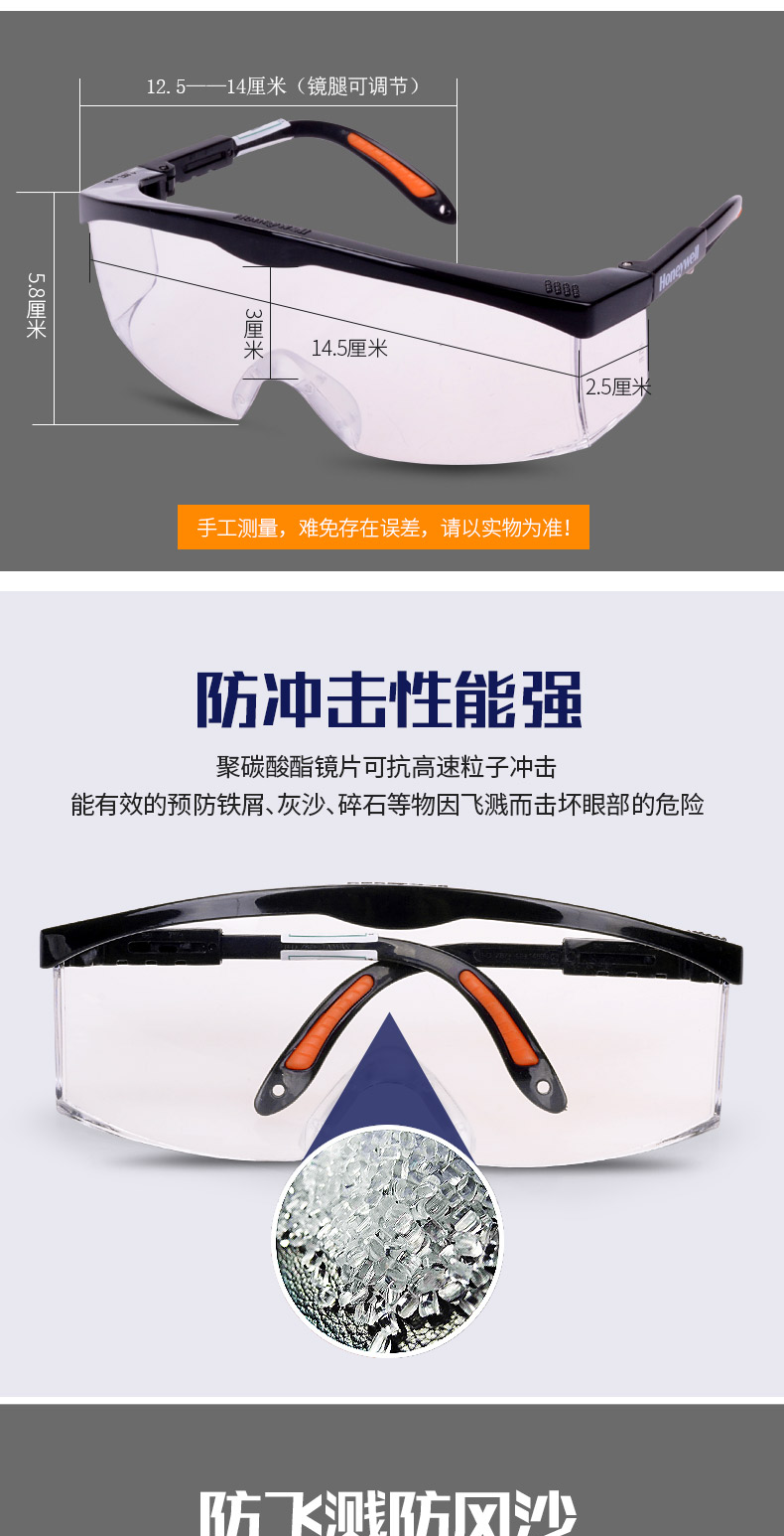 霍尼韋爾100110護目鏡防沖擊防霧防風沙唾沫飛濺騎行平光防護眼鏡