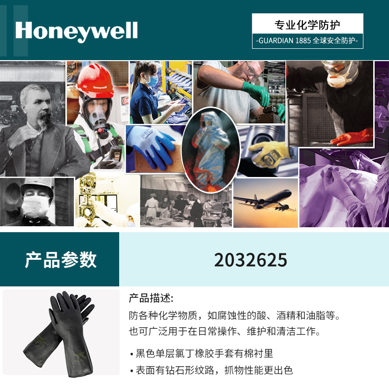 霍尼韋爾2095020黑色加厚防化手套防腐蝕防氫氟酸實驗防化耐酸堿手套