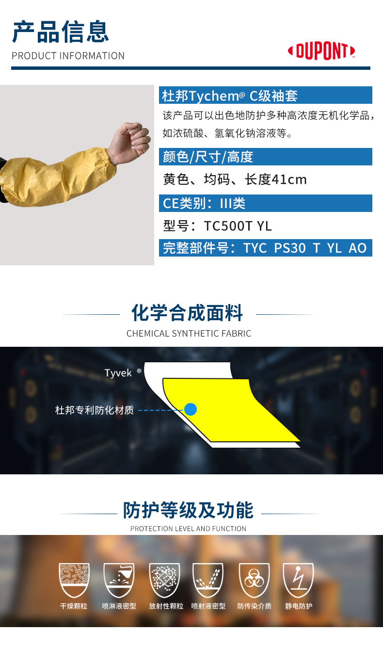 杜邦C級防化袖套耐酸堿防腐蝕化工實驗室防酸長(cháng)袖套危化品搬噼裡啪啦免費運