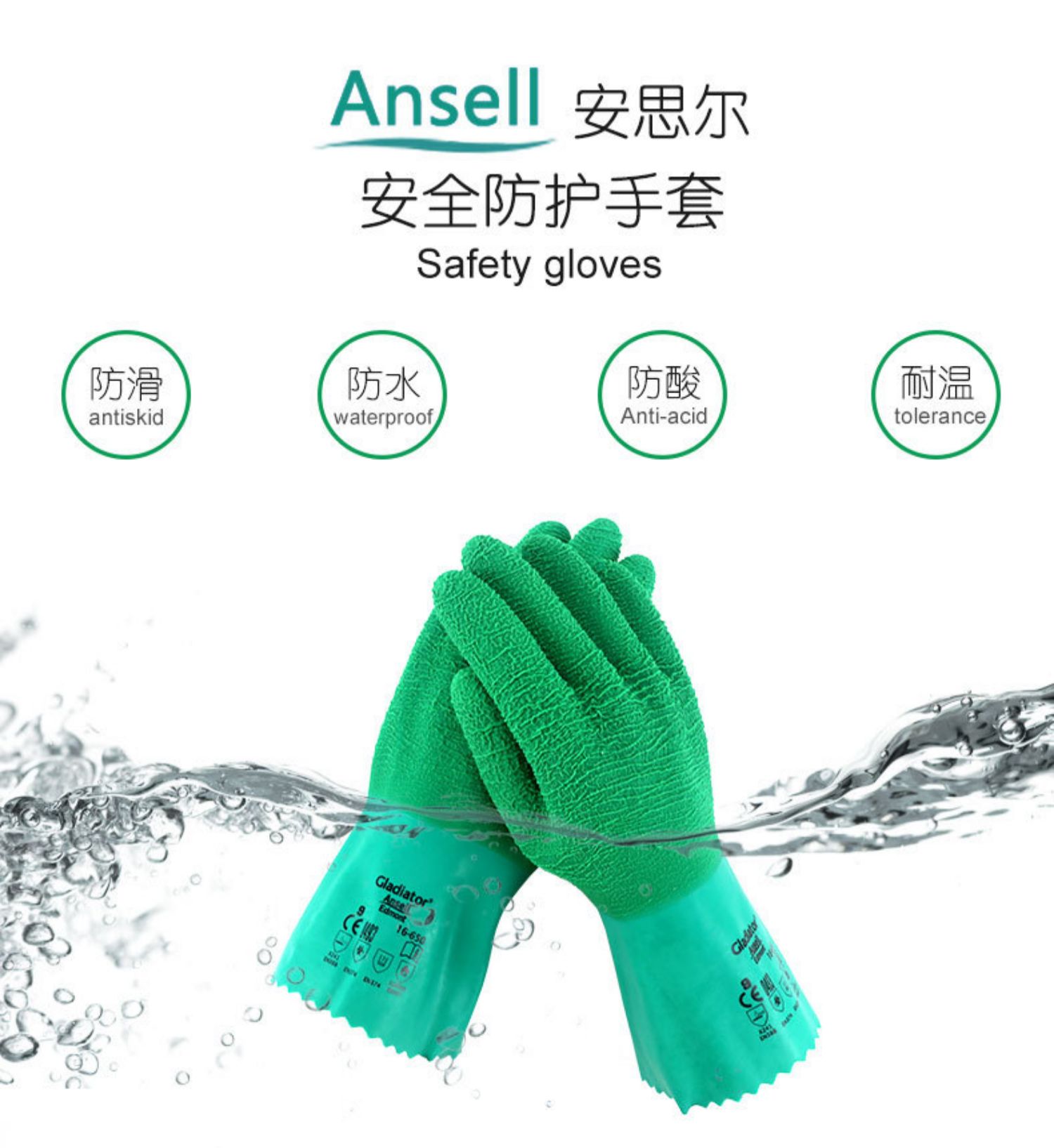 安思爾工業防燙手套橡膠隔熱耐高溫殺魚防割刺防熱水油濺廚房烤箱