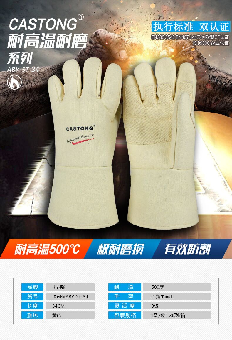 卡司頓耐高溫手套 防500度耐磨耐用加長(cháng)加厚防燙工業烘箱烤箱隔熱
