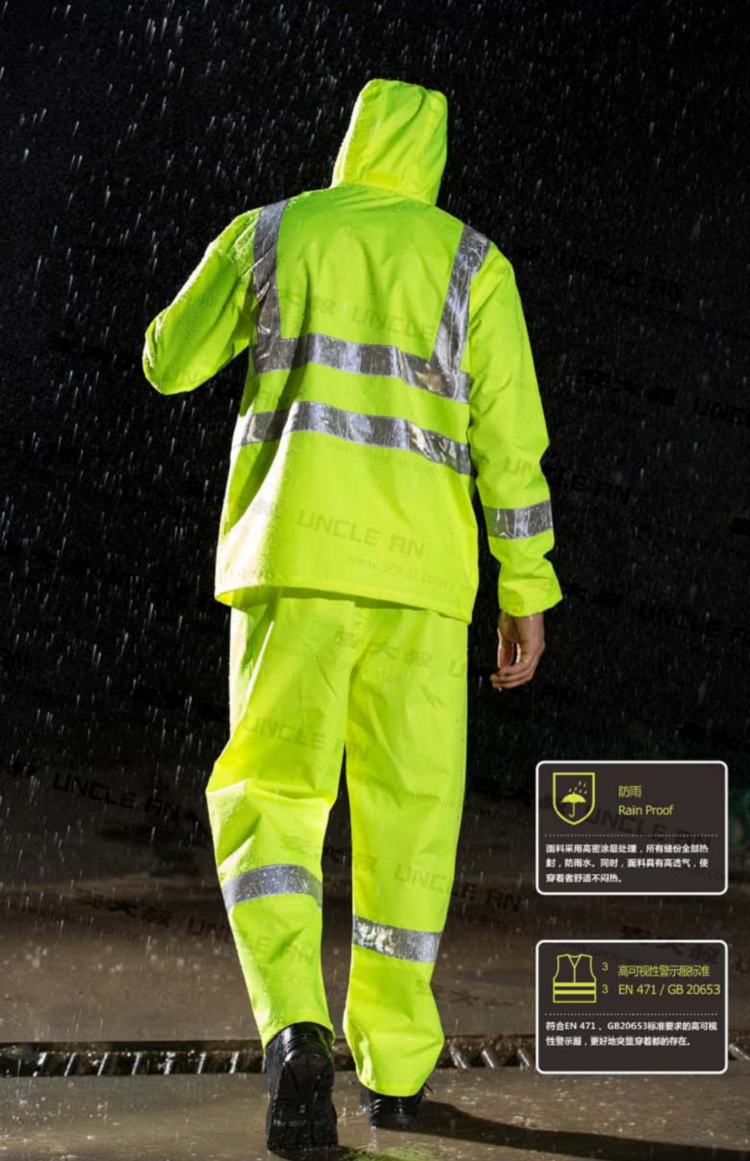 安大叔3M反光條熒光高警示雨衣套裝輕便耐磨透氣分體式反光雨衣