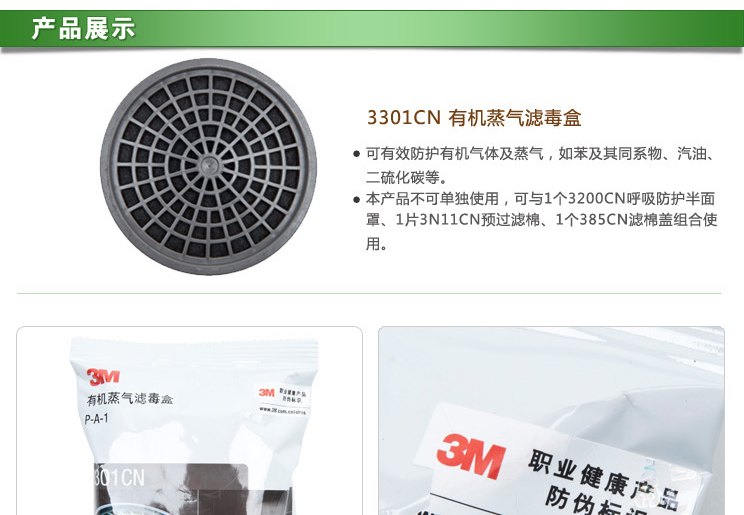 3M3301CN有機氣體單罐濾毒盒噴漆防毒防裝修異味有機蒸汽濾毒盒