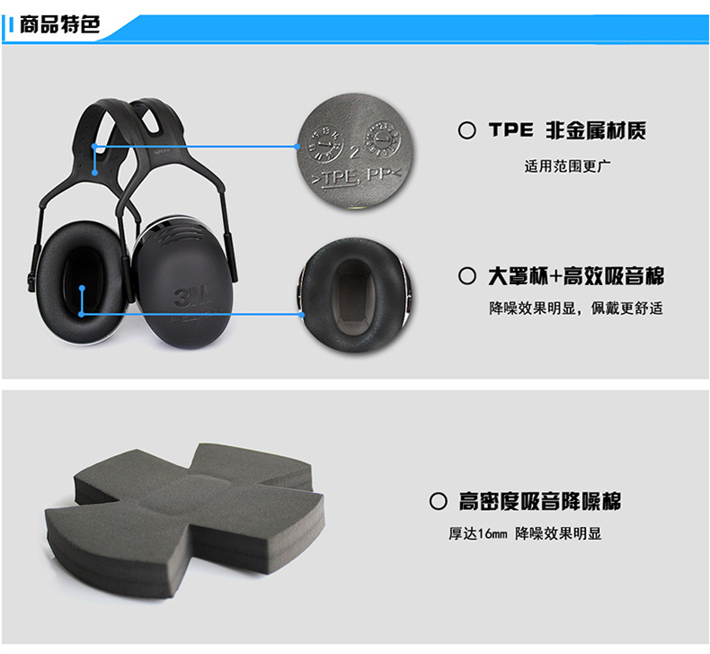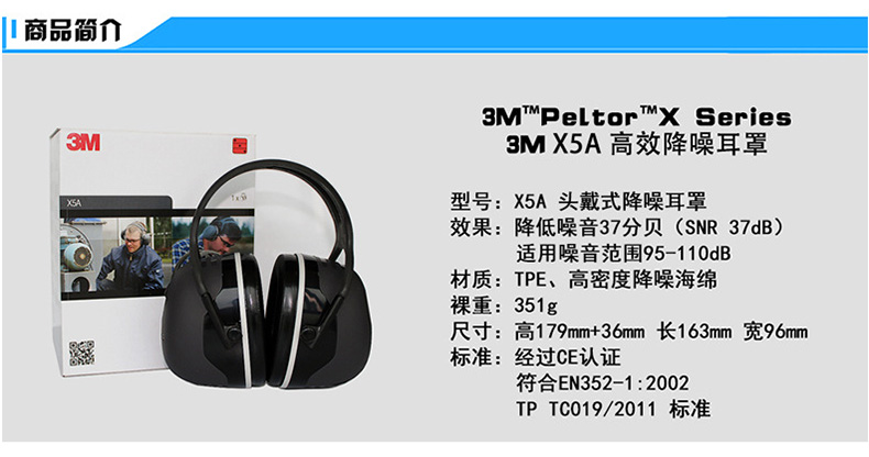 3M X5A 輕便舒适款降噪耳罩隔音耳罩Peltor X系列高降噪耳罩
