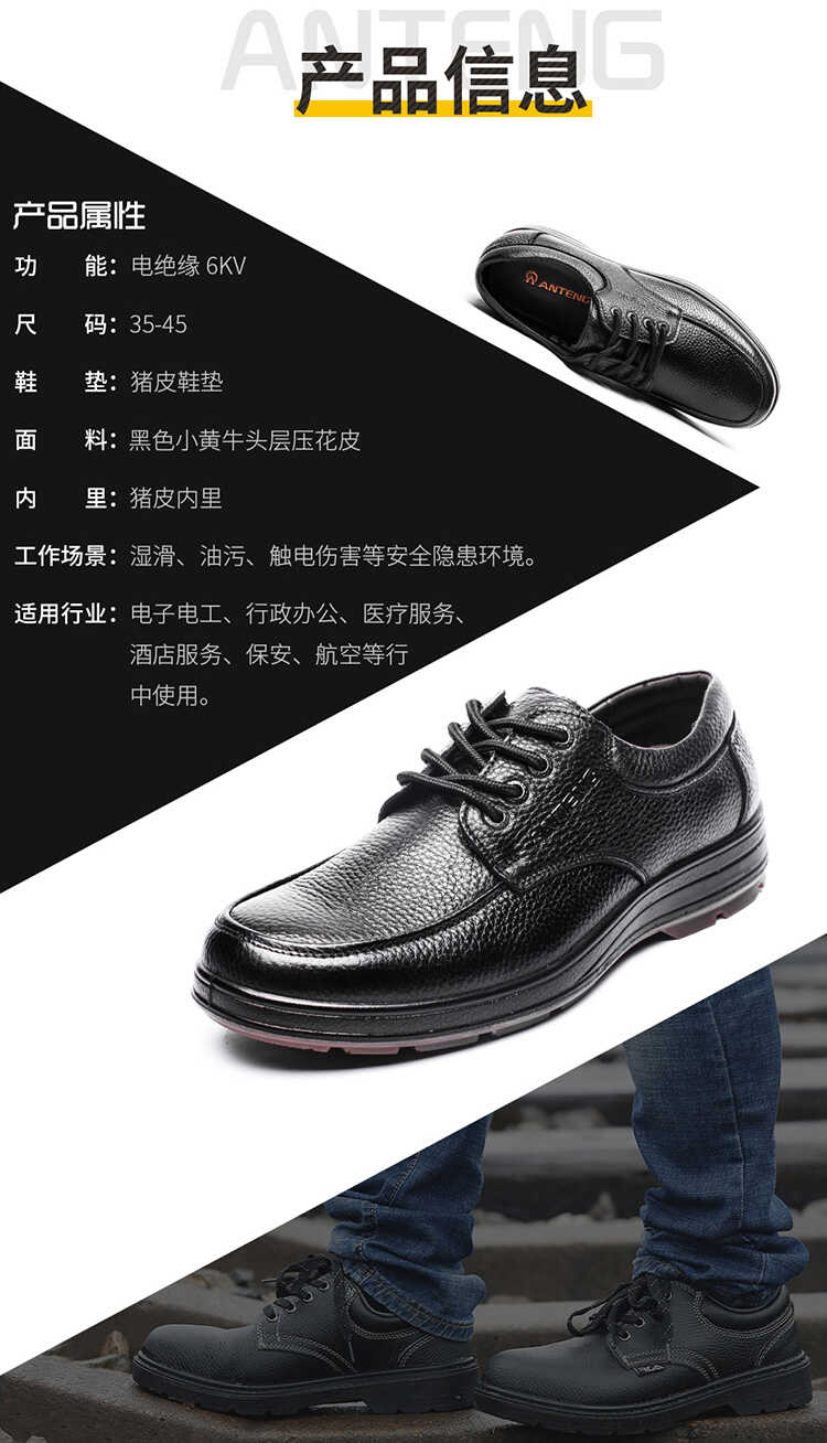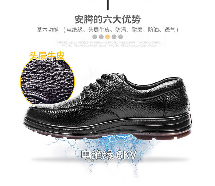 安騰A8530絕緣安全鞋牛筋大底頭層牛皮透氣行政辦電工6kv絕緣鞋
