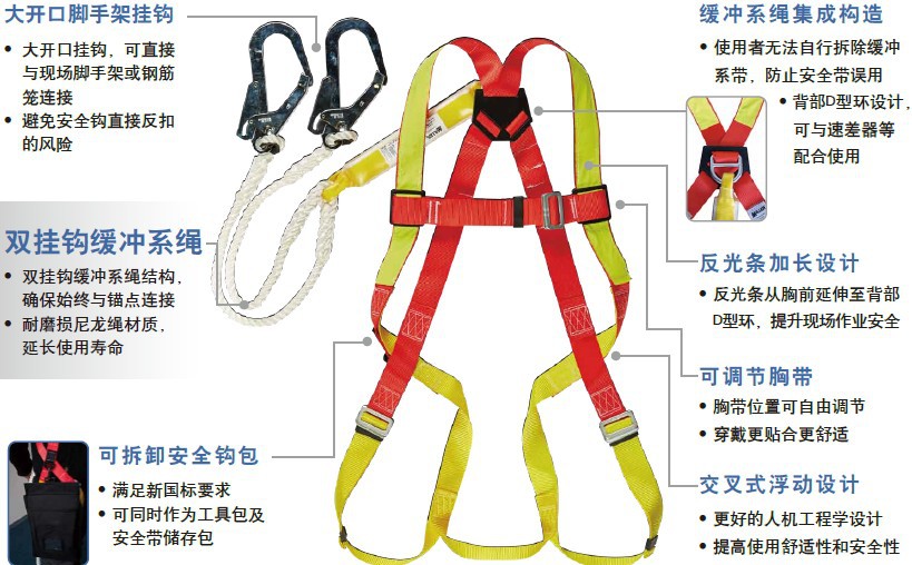 霍尼韋爾DL-C2新國(guó)标雙叉緩沖繩雙挂點雙挂鈎防墜落高空安全帶丁香花MV