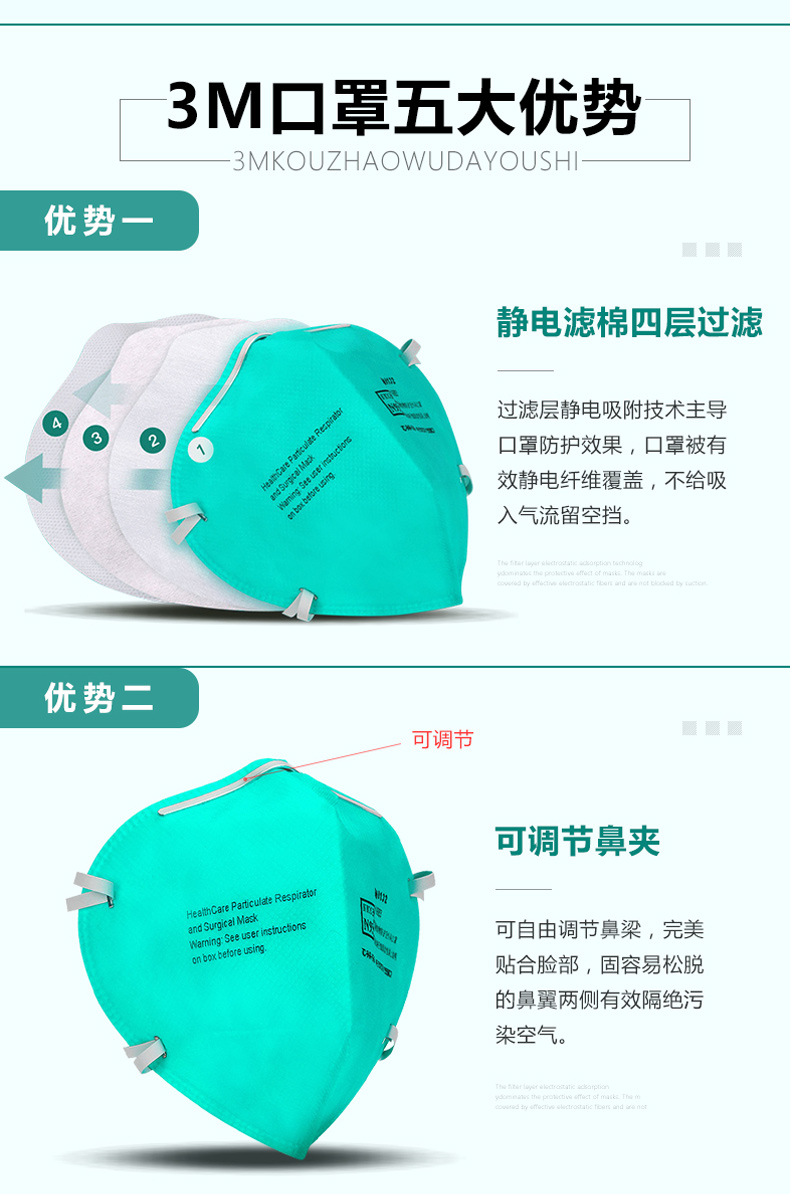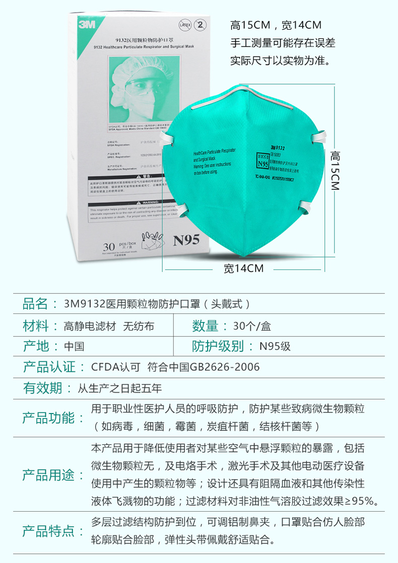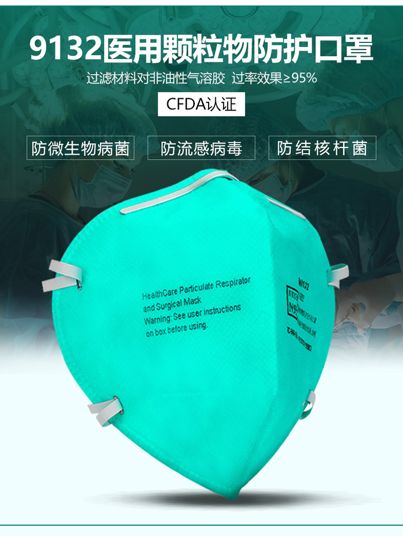 3M9132顆粒物防塵防護口罩防塵防飛沫口罩N95頭戴式口罩獨立包裝