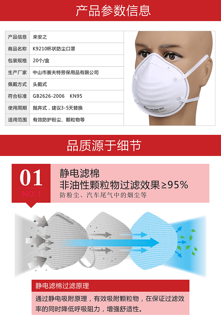 來安之K9210工業防護杯狀4層無紡布口罩KN95防粉塵顆粒物