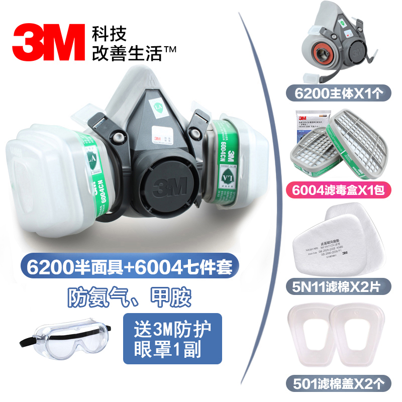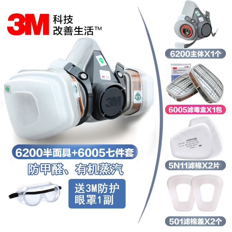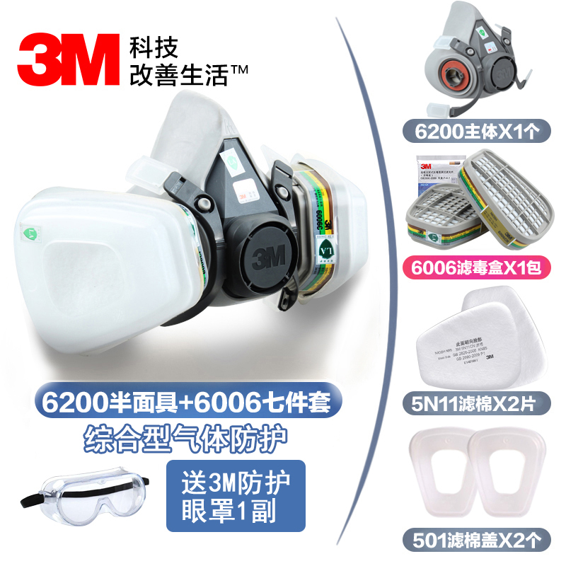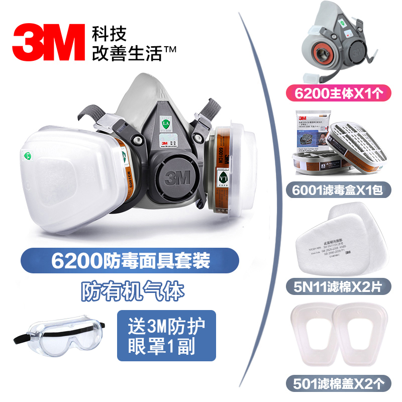 3M6200防塵毒半面(miàn)具噴漆防護有機酸性甲醛蒸汽防護半面(miàn)罩防護各種(zhǒ視頻中文版ng)有毒氣體