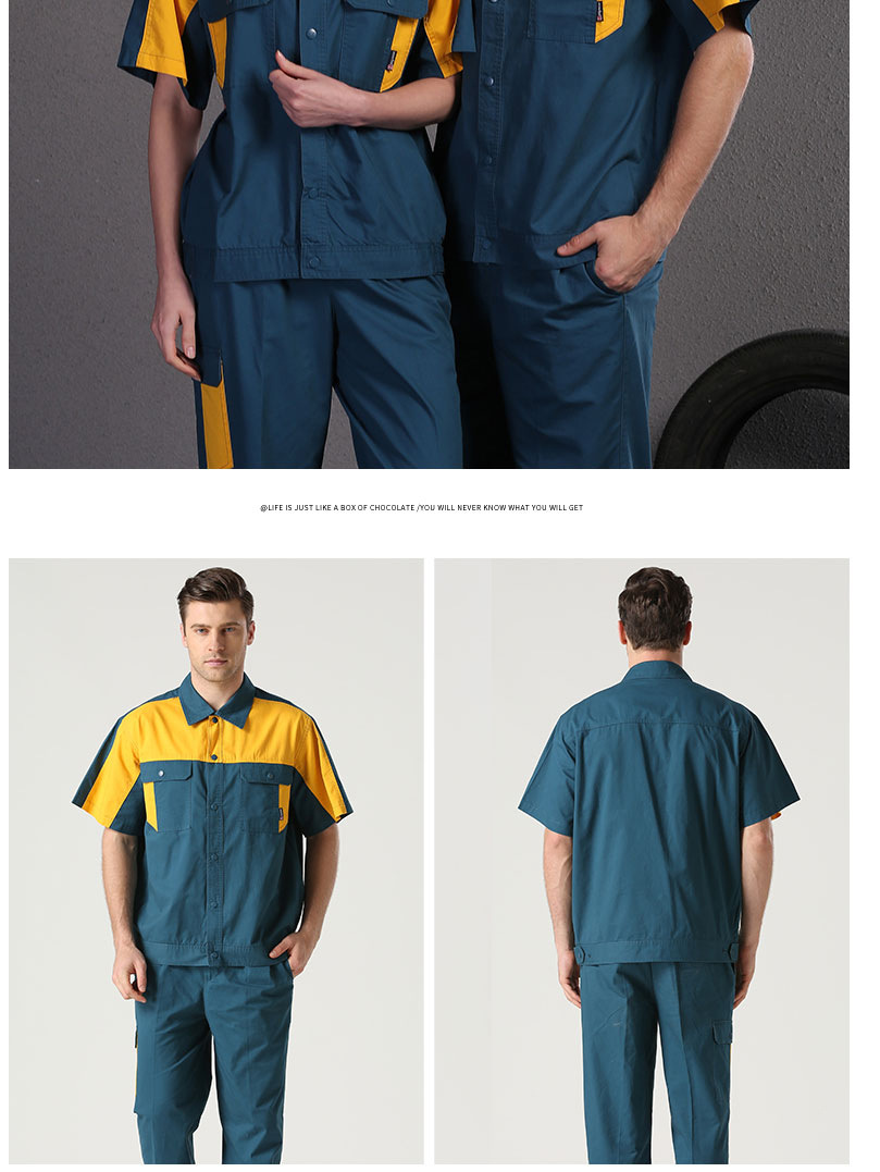 邦安夏季純棉工作服套裝 男汽修服維修勞保服長(cháng)短袖工服車間在線成全廠服