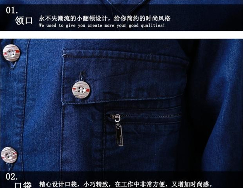 邦安2206夏季短袖長(cháng)袖全棉牛仔工作服套裝透氣舒适汽修電焊工裝