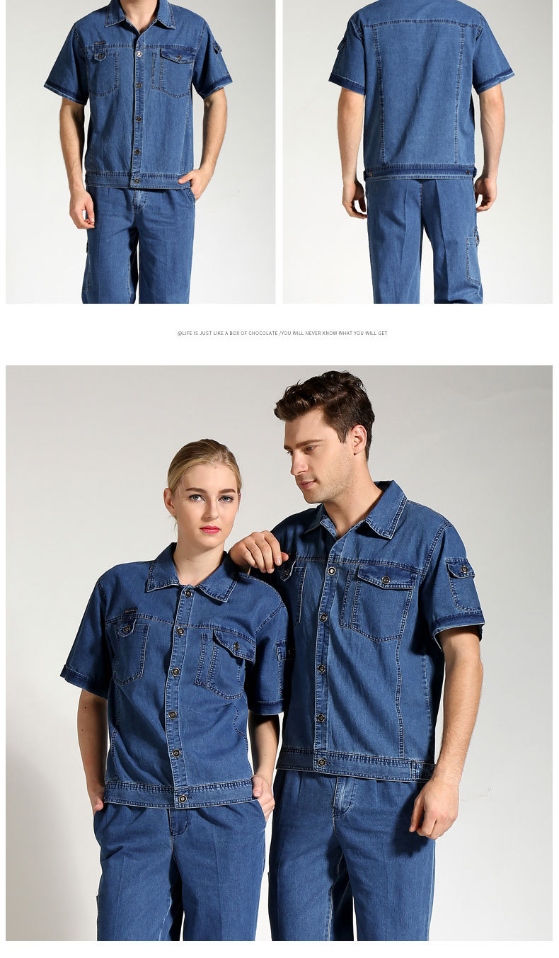 邦安1406夏季薄款長(cháng)袖牛仔工作服套裝 男女款吸濕排汗透氣滌棉服