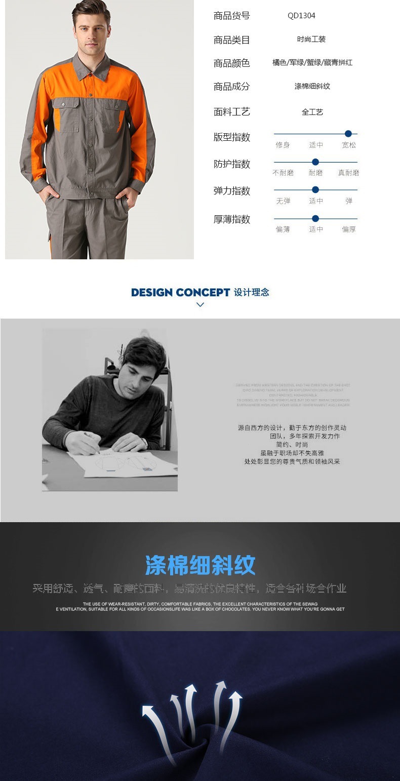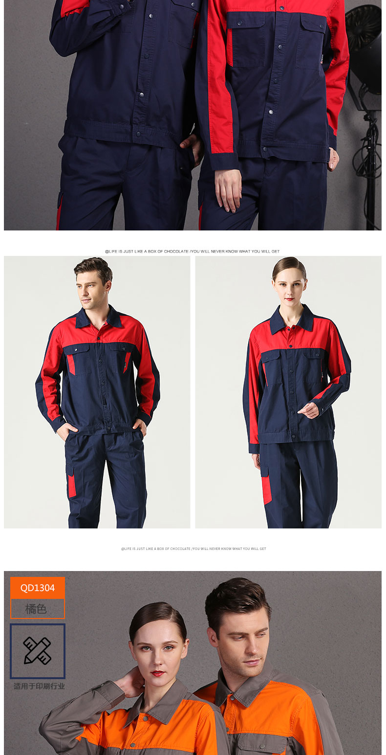 邦安1304高檔春夏季全棉長(cháng)袖工作服 男女時(s影院國語hí)尚拼色工裝工服