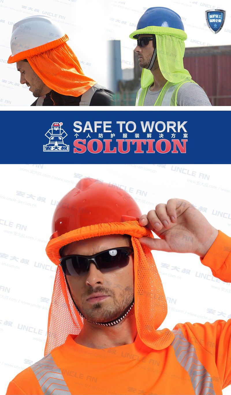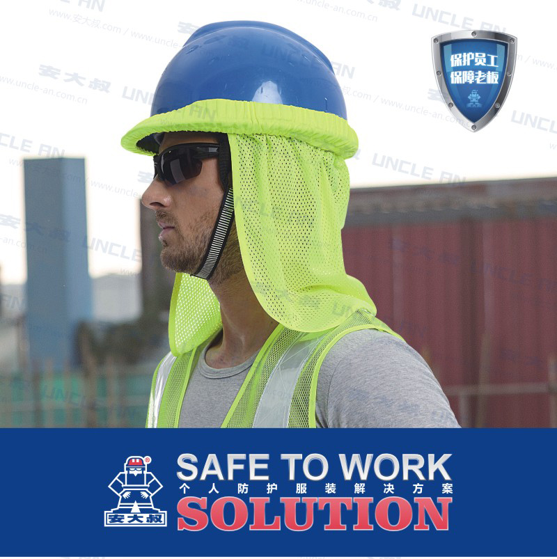 安大叔HF140帽檐安全帽防曬遮陽帽闆頭盔工地遮臉裝備橙色熒光綠