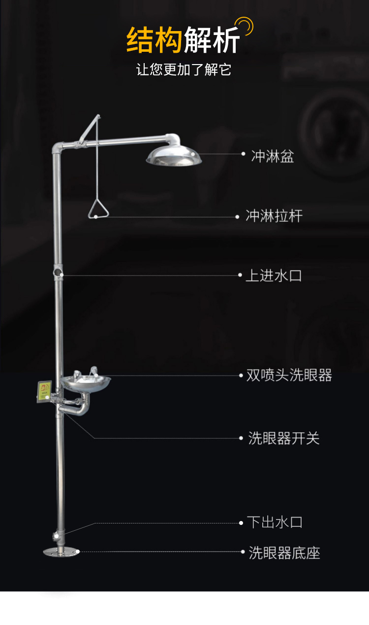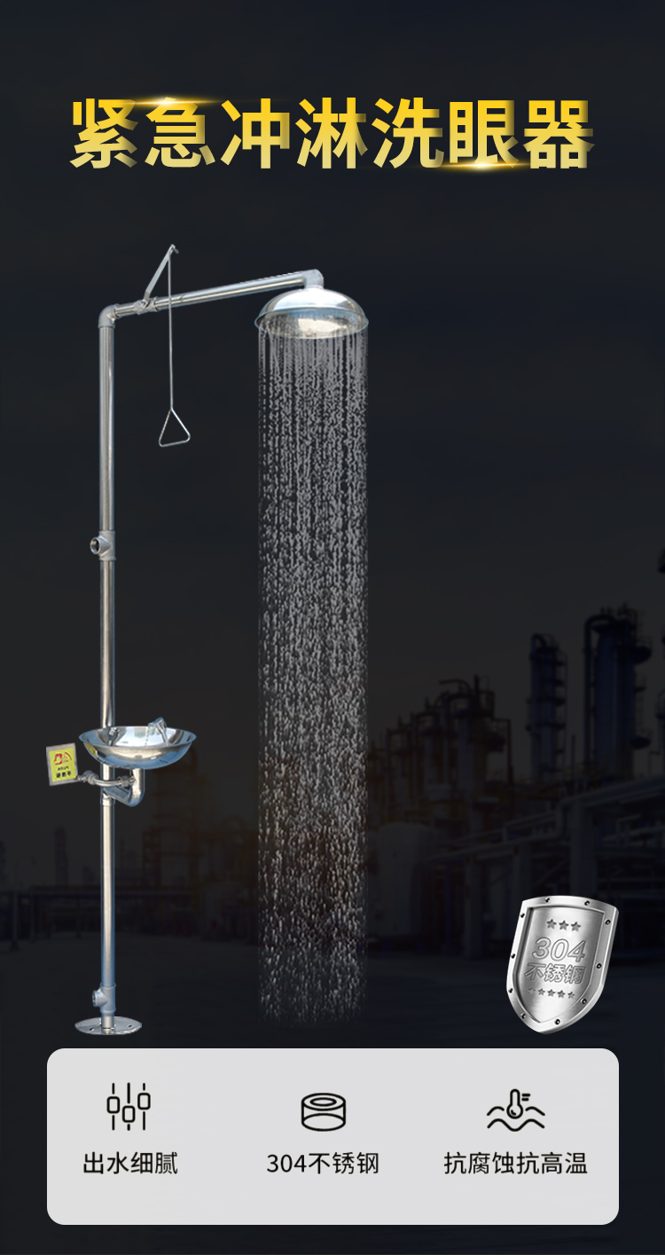 304不鏽鋼緊急洗眼器複合式噴淋洗眼器驗廠應急立式沖淋實驗室