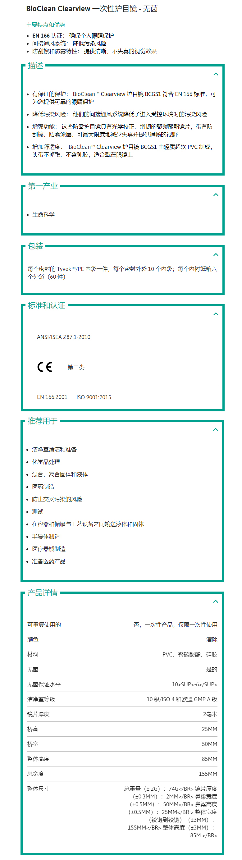 Ansell/安思爾 無菌護目鏡化學(xué)品液體飛濺BioClean C視頻視頻learview防護眼鏡
