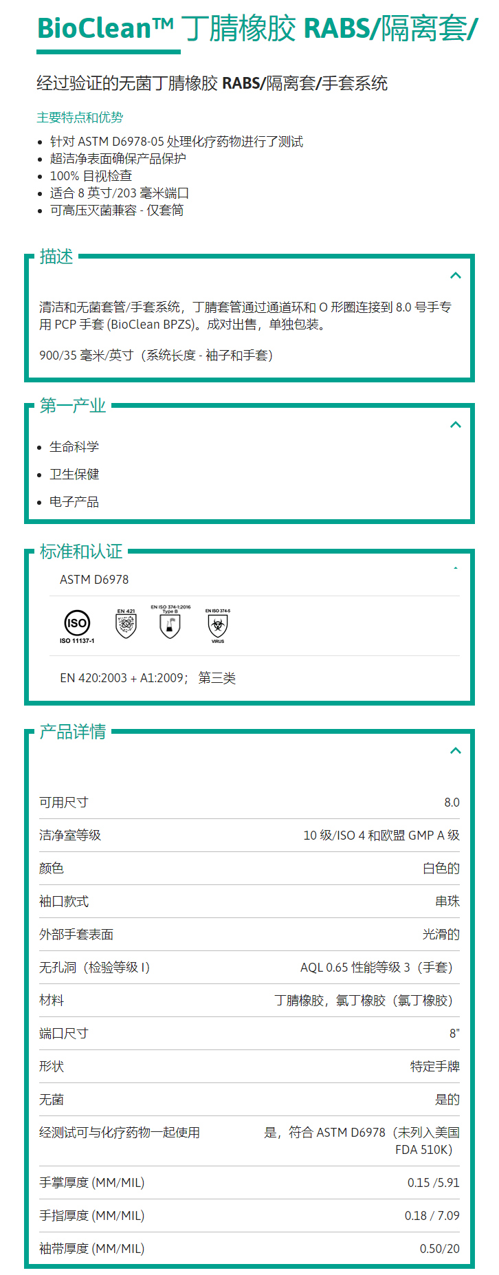 Ansell安思爾 無菌丁腈橡膠幹箱手套 試驗操作箱隔離箱手套科研實驗手套