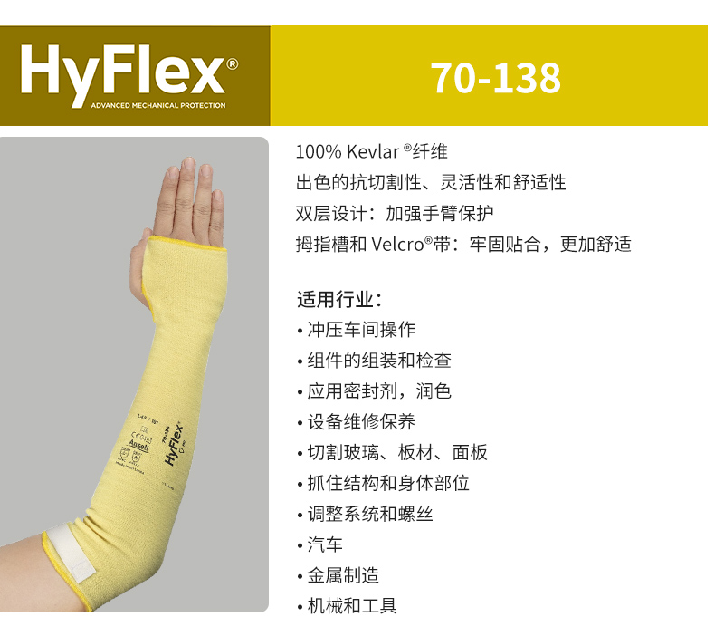 安思爾ANSELL70-138防切割袖套防割傷長(cháng)袖防割傷套袖45C視頻高清M長(cháng)手袖