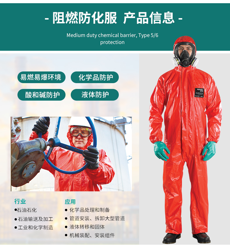 微護佳CFR阻燃化學(xué)防護服石油石化連體防化服化工耐酸堿防酸服