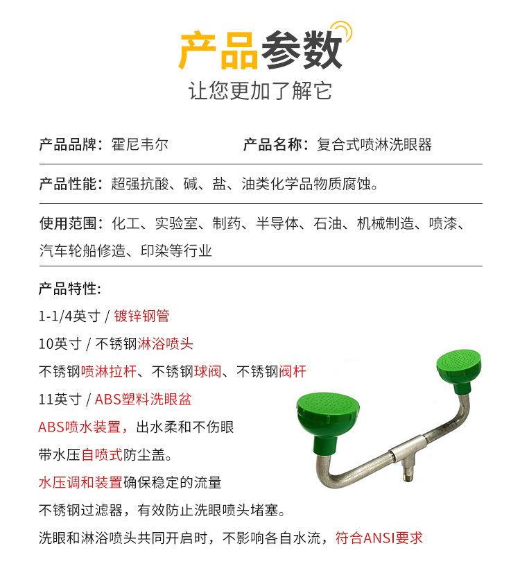 霍尼韋爾7210B/7210A升級款複合式緊急噴淋洗眼器不鏽鋼沖眼器